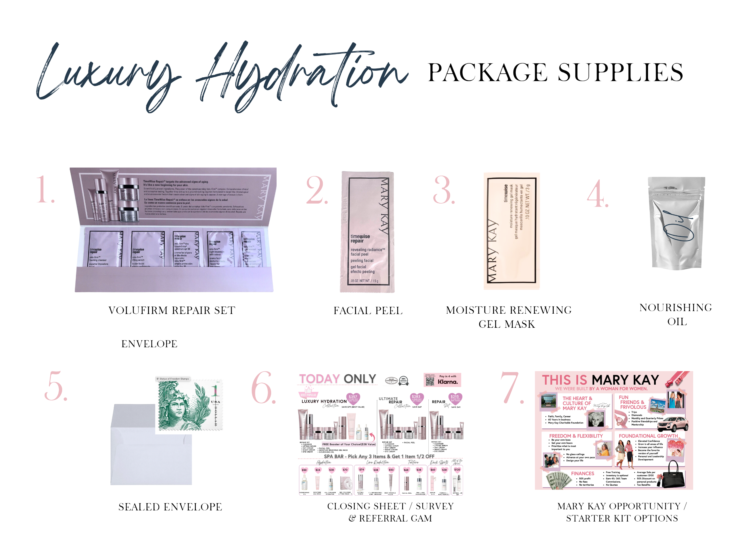 Which includes; Foaming Cleanser, Day Cream,, Night Cream, Lifting Serum, & Timewise repair Eye Cream.- Timewise Repair Facial Peel- Moisture Renewing Gel- Nurishing Oil